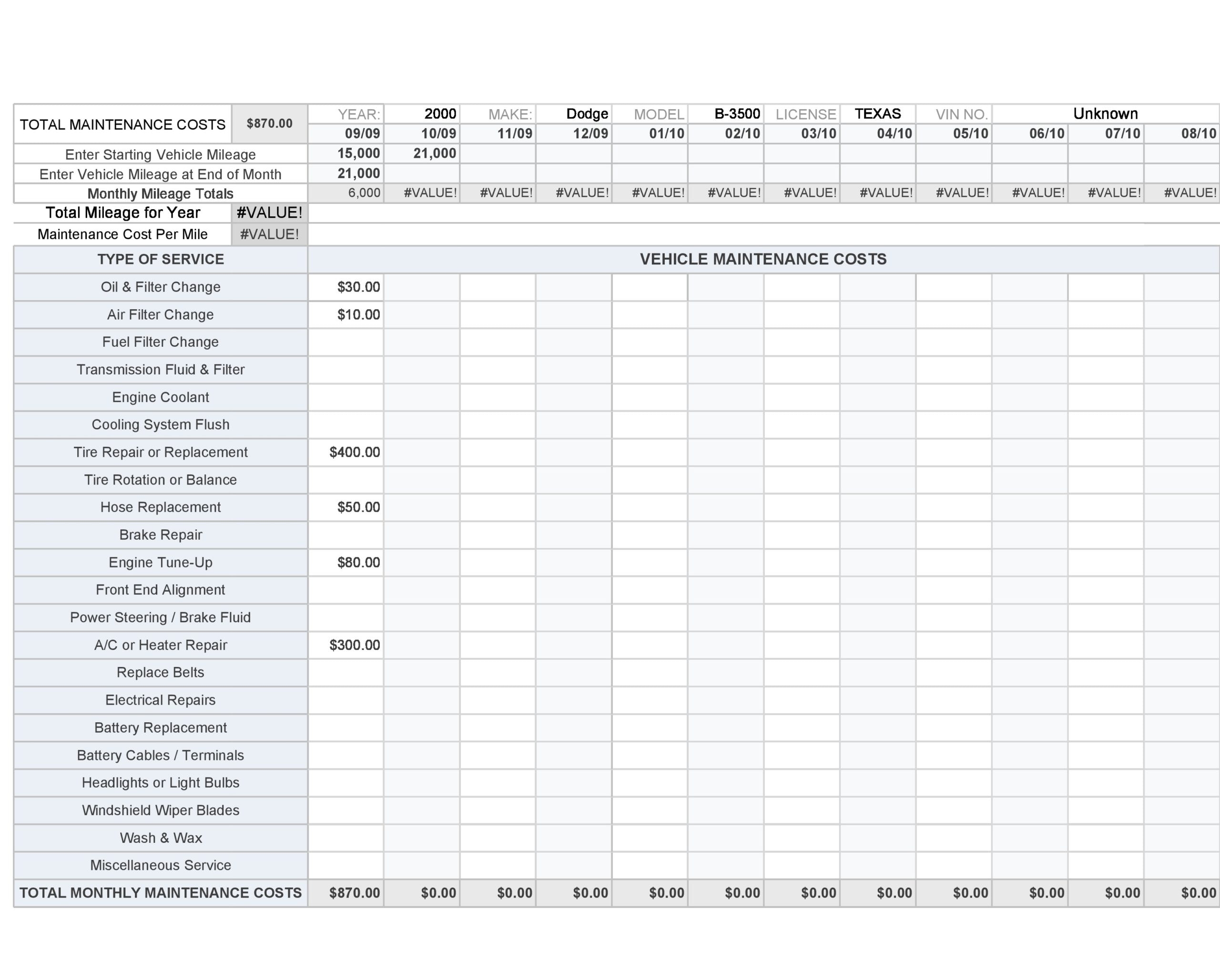 Printable Maintenance Log Template Excel